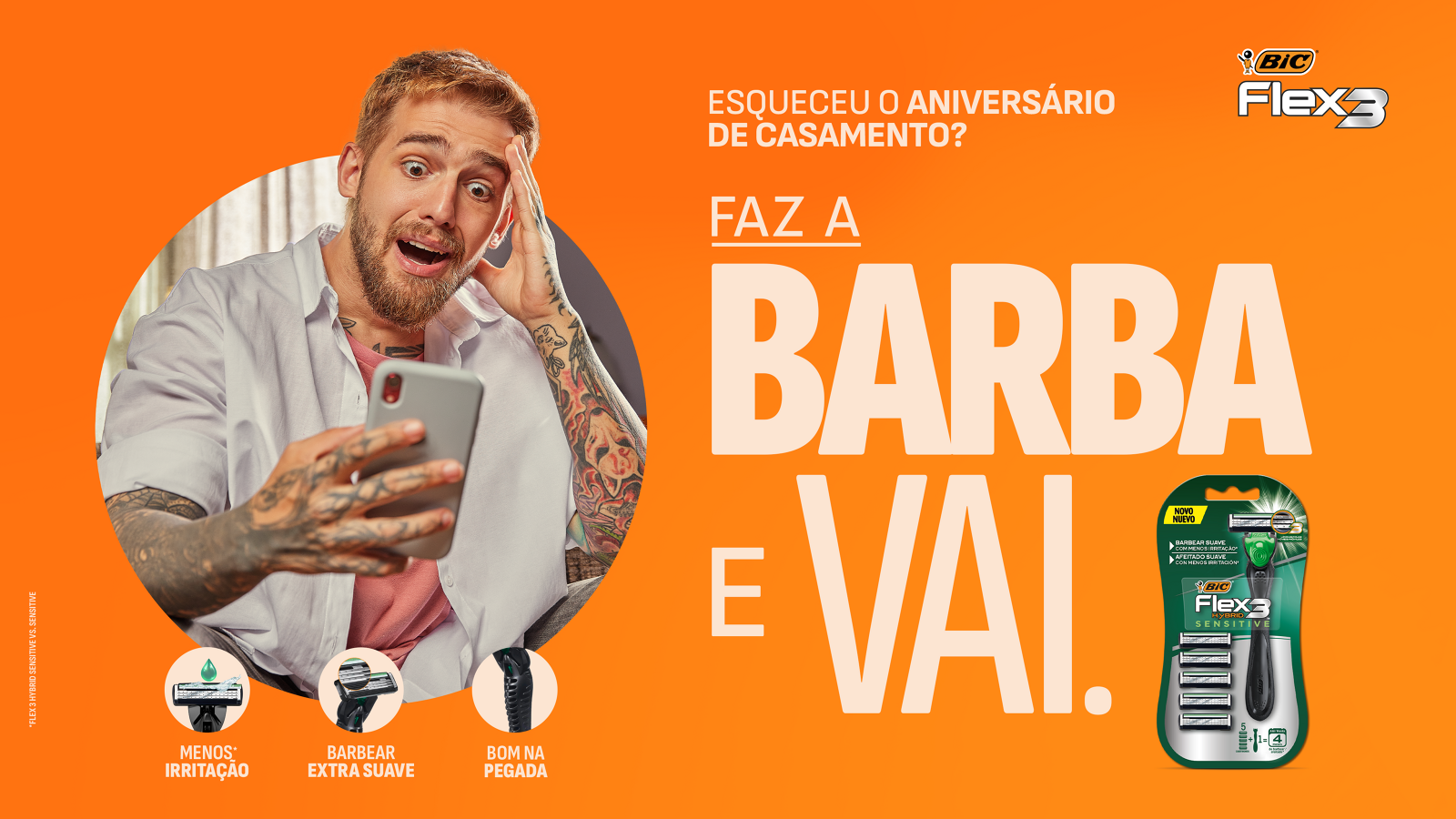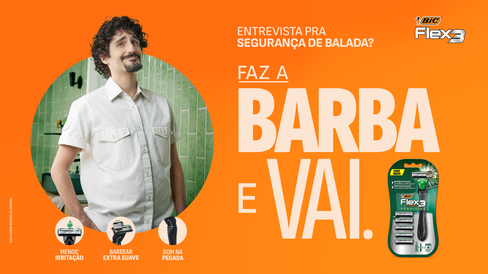 "Coloca o cropped e reage" foi a frase que me inspirou a criar o "Faz a barba e vai", que traz a ideia de encorajamento quando a autoconfiança masculina é minada de alguma forma, principalmente pelos desafios do cotidiano.