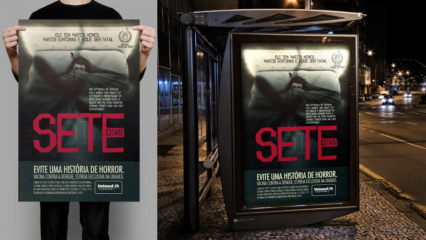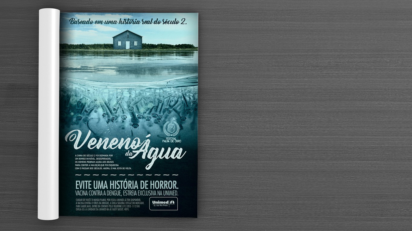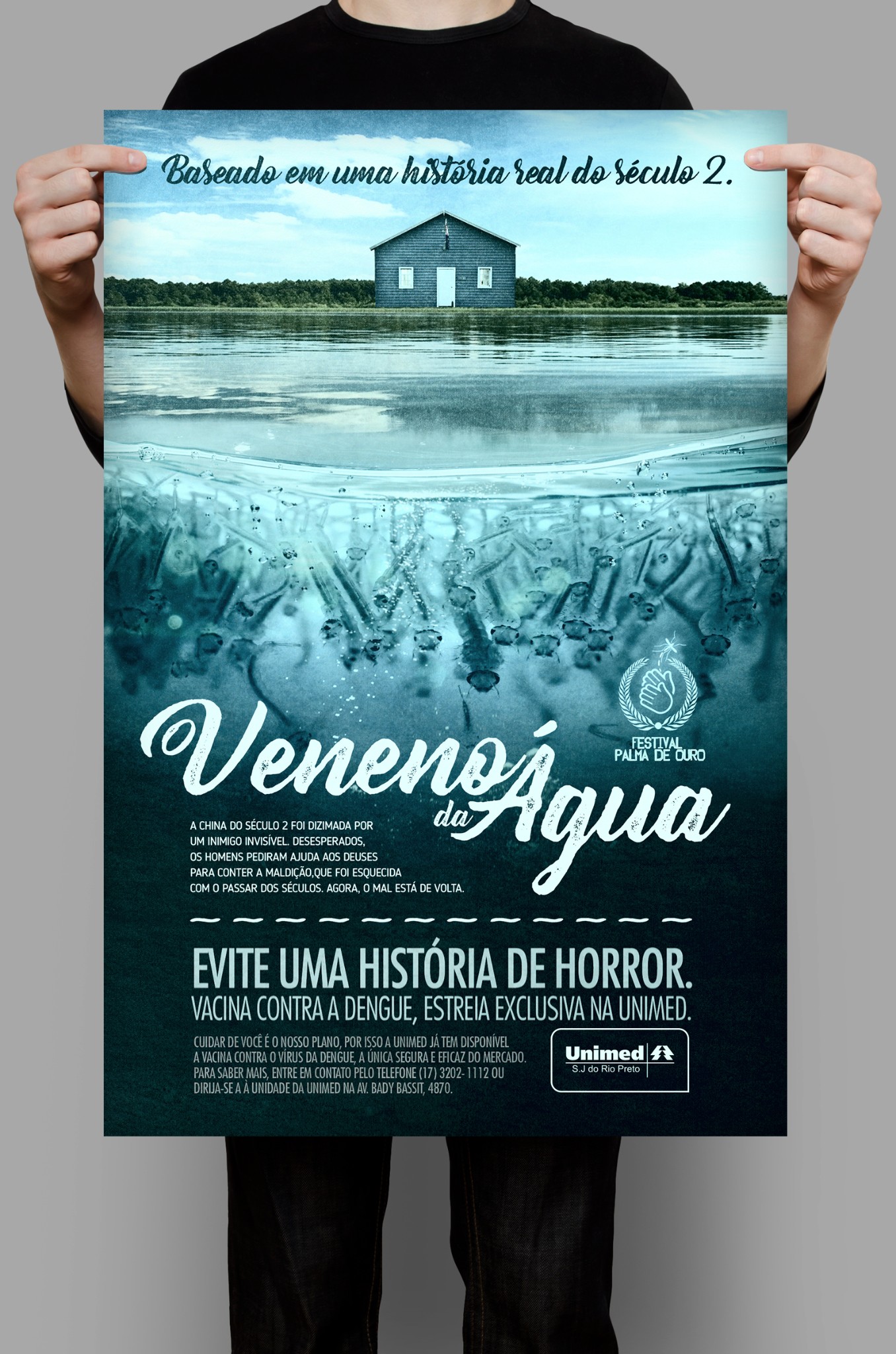 Estudei a dengue nos séculos II e descobri que a praga dizimou a China nessa época. Os chineses a chamavam de "veneno da água". descobri também que em algumas regiões africanas, o termo que definia a doença era "Ka-Dinga Pepo", que significa espírito do mal. O insight veio daí e pensamos em criar sinopses/cartazes de filmes de terror e direcionar toda a campanha para impactar pessoas que estão `a procura de novos filmes. Assim, chamamos a atenção para a história do "filme", que é baseada em fatos.